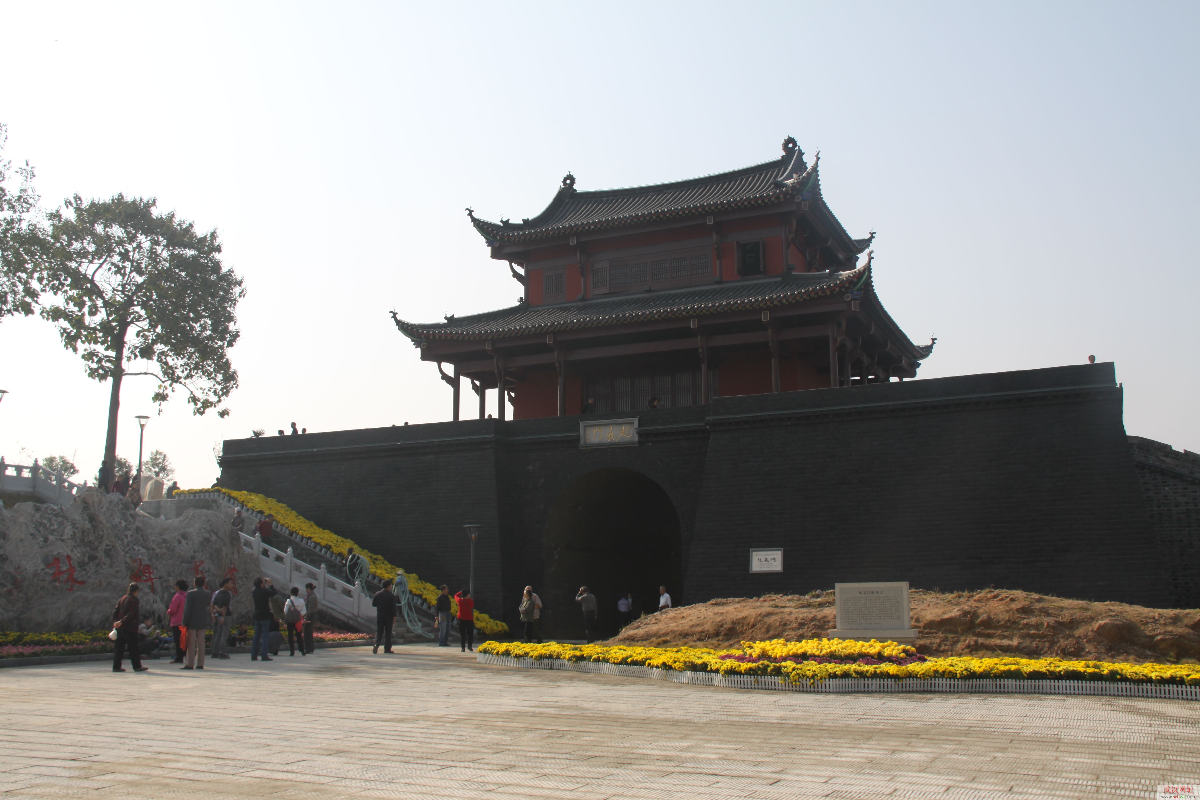 武昌起義門舊址位于武昌首義南路,原名“中和門”,是武昌城十大古城門之一。武昌首義爆發后,革命黨占領并打開中和門,迎接城外部隊入城,在城樓布定大炮轟擊總督府。武昌首義勝利后,中和門被譽為“首義勝利的開端”。1912年,改名“起義門”。城臺主體占地890.8平方米。城門高7.1米,寬5米,城門上方嵌有長方形石匾,上刻葉劍英題寫的“起義門”三個金色大字。城樓高11.3米,是穿斗歇山頂式的雙層建筑,飛檐凌空,兩側是高大厚實的帶箭垛的灰色城墻。整個建筑莊重雄偉,極為壯觀,具有較高的歷史價值和藝術價值。1956年湖北省人民政府公布其為省級文物保護單位。2013年公布為全國重點文物保護單位。